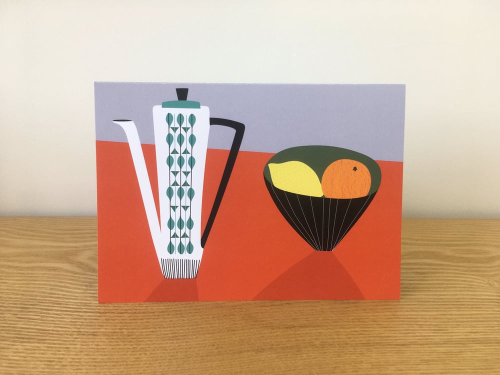 Coffee Pot Cards - Vermilion Lid, Heart Enamel, Orange Tulip, Turq. Herringbone & Totem